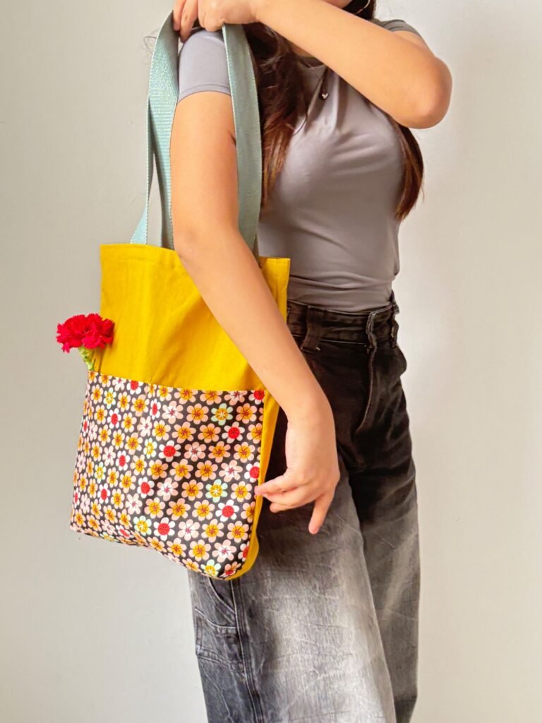 - Interior de tote bag combinado con algodón