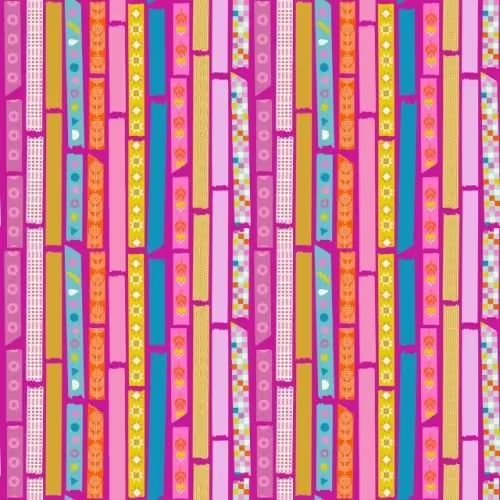 Descubre la tela de algodón americano estampada rosa con tiras de washi tape, tela de patchwork multicolor de Ruby Star Society, una opción perfecta para quienes buscan darle vida a sus ideas creativas. Este tejido de alta calidad combina colores brillantes y patrones geométricos únicos que harán destacar cualquier obra textil.