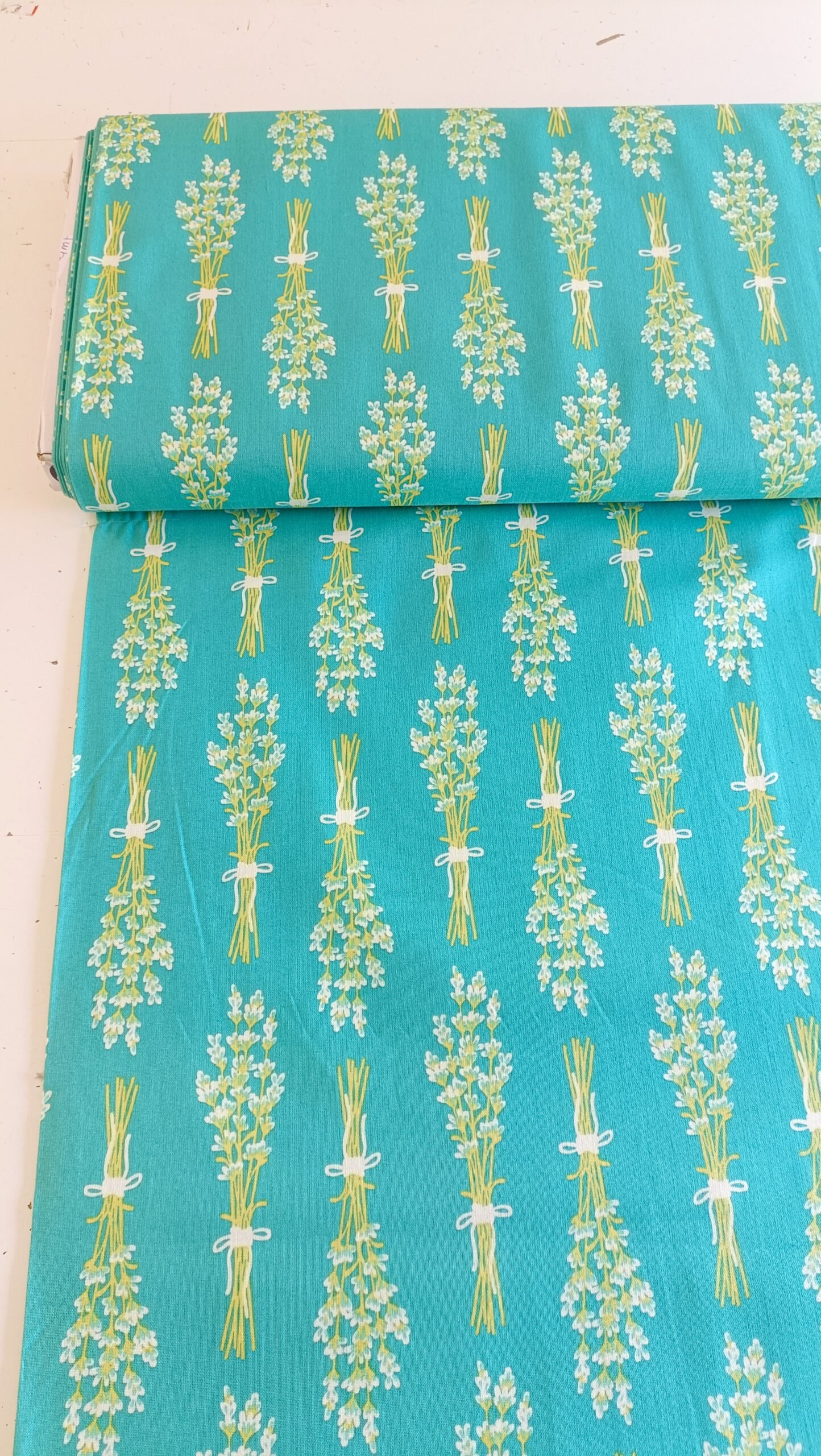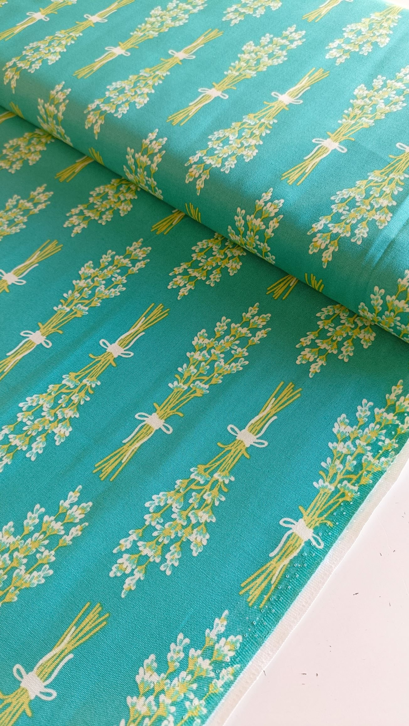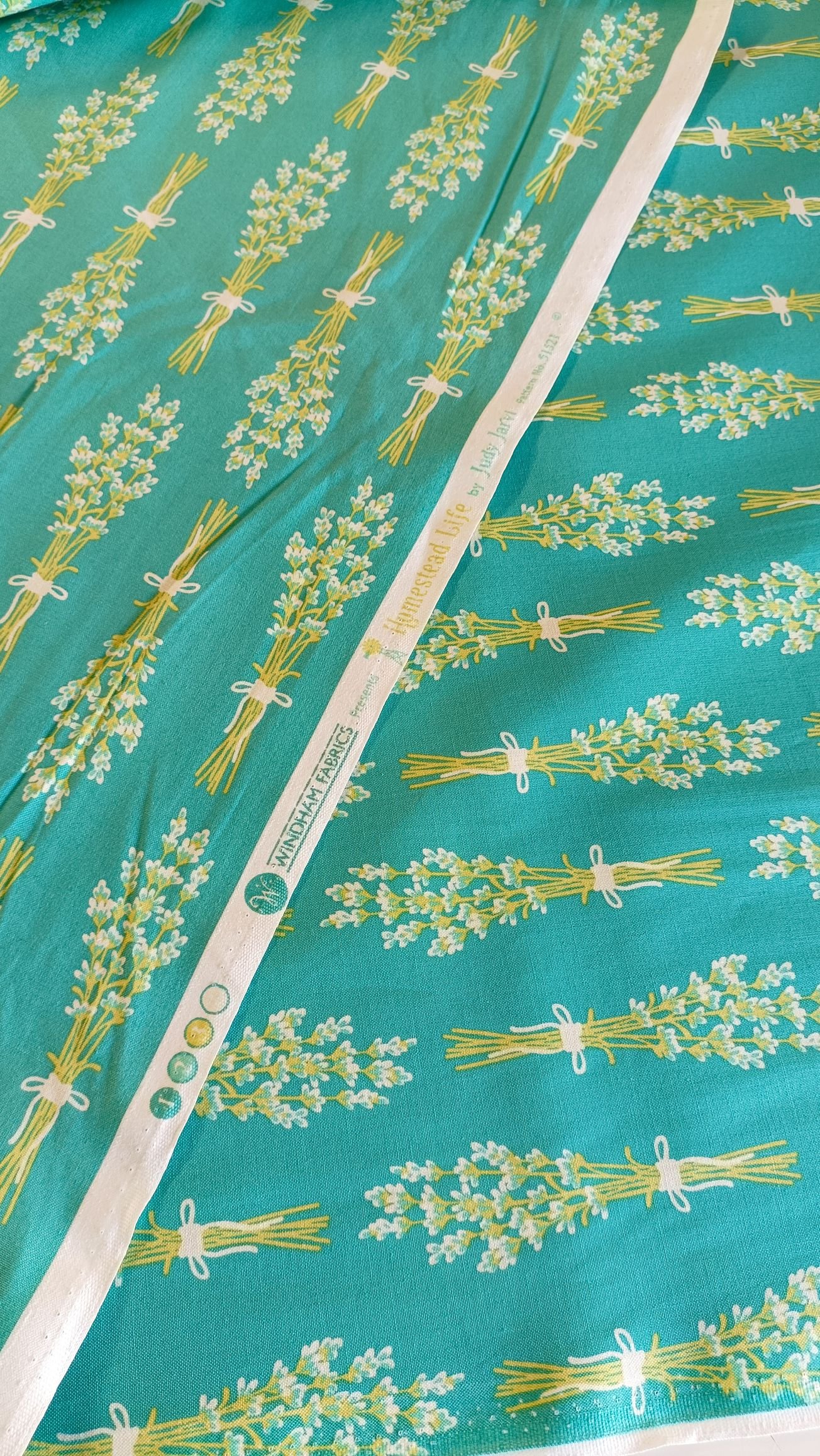 Descubre esta exclusiva tela de algodón americano verde adornada con encantadores ramos de flores. Diseñada por Judy Jarvi para la colección Homestead Life de Windham Fabrics, combina elegancia y versatilidad para todos tus proyectos creativos.
