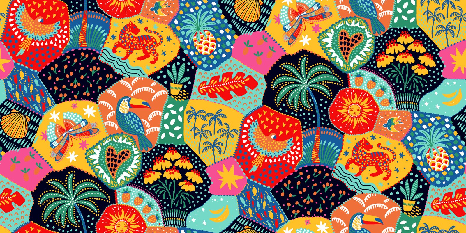 El Popelín negro de algodón con palmeras y tucanes, combinado con flores tropicales de estilo naïf, es la opción perfecta para quienes buscan un tejido con personalidad. Este exquisito diseño combina la sobriedad del fondo negro con la frescura y colorido del mundo tropical, convirtiéndolo en un tejido versátil ideal para proyectos únicos.