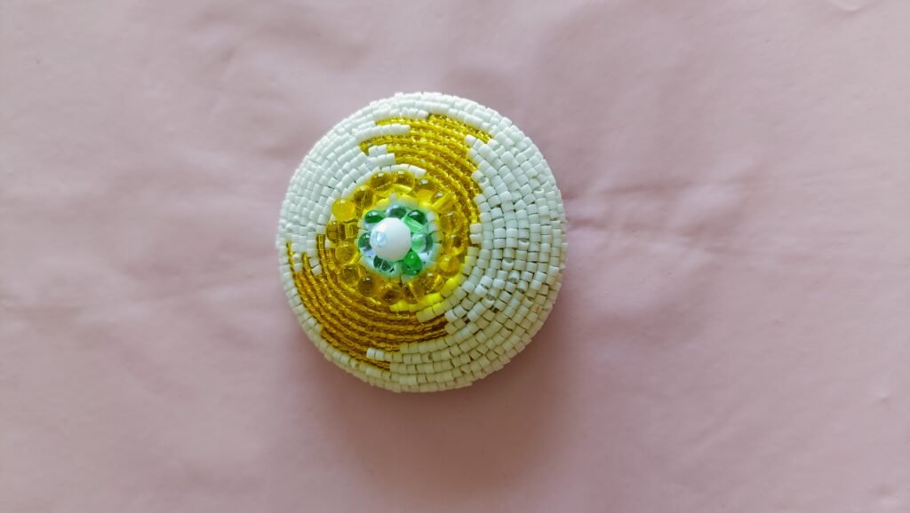 Diseñarás y bordarás dos botones joya sobre base de fieltro de lana española, utilizando materiales que marcan la diferencia: